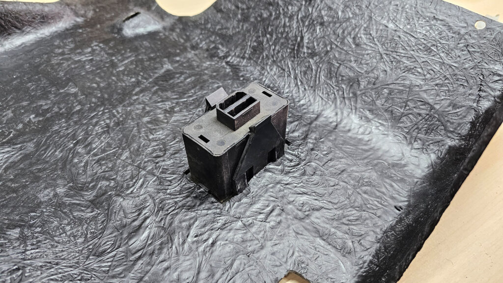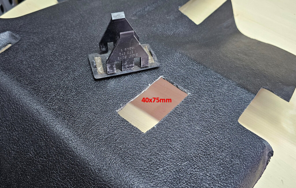 De schopplaat moest wel nog even aangepast worden om de gong te kunnen monteren, maar dit is makkelijk zelf te doen, ook met de glasvezel schopplaat van Tim’s Classic Parts. Een gat van 40x75mm is nodig om de houder erin te klikken.