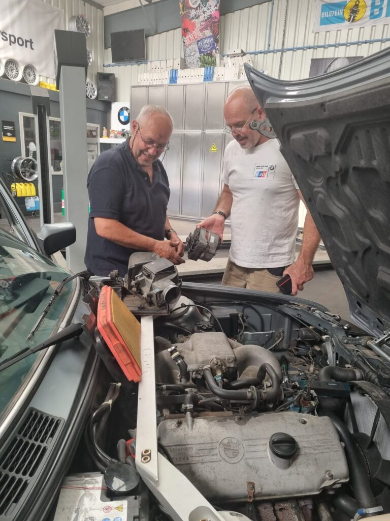 Helaas kwamen we er ook achter waarom de uitlaat lekt… namelijk een afgebroken bout van het uitlaatspruitstuk. Dat wordt helaas een klusje voor een andere dag.