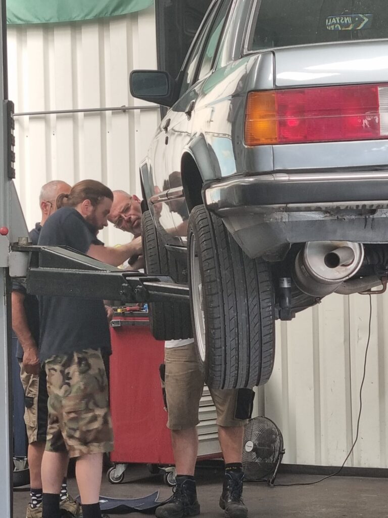 Om 10:00 stonden we al voor de poort bij D&D Automotive te Landgraaf, zij stelden geheel gratis een brug en gereedschappen ter beschikking zodat we moeiteloos konden klussen, waarvoor dank!