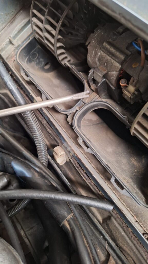Handig gereedschap om de kachelmotor klem los te wippen!